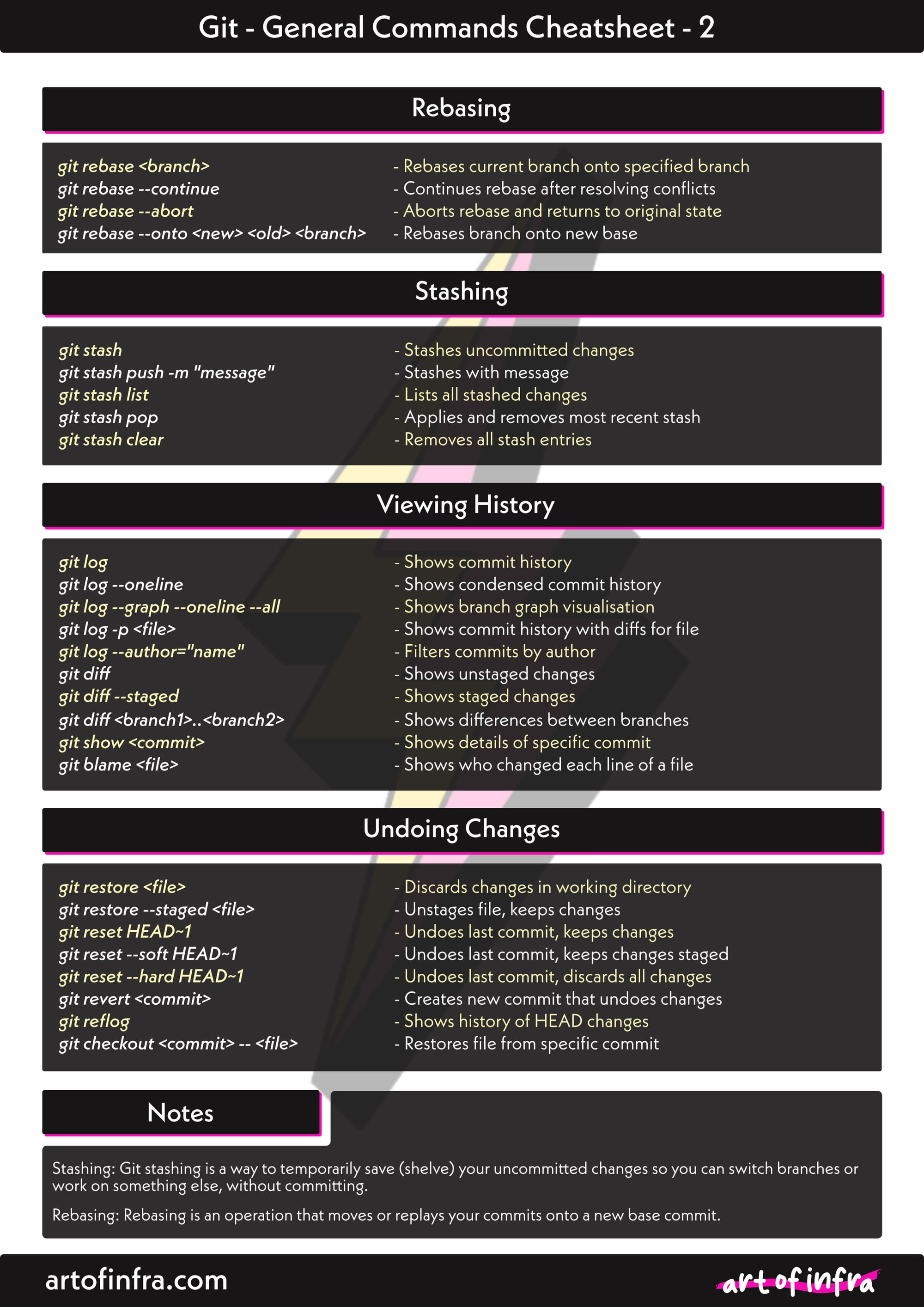 I've put together some of the most used commands you'll more or less use every day when working with Git. These were "stashed" away in my notes, and I thought it would be good to organise them for others.